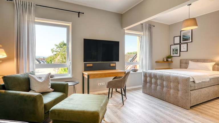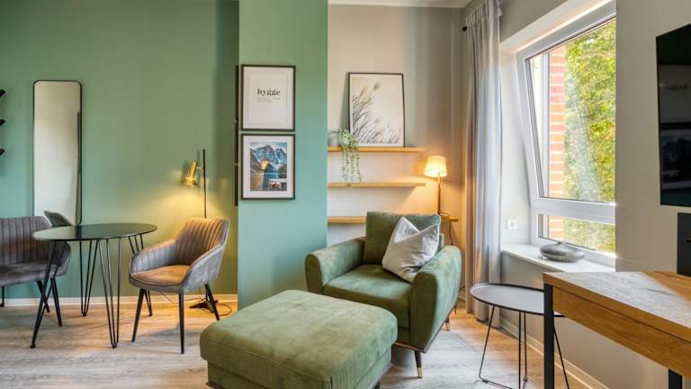 Das One Moment Boardinghouse - Porta Westfalica bietet kostenlose Parkmöglichkeiten und WLAN für seine Gäste. Es ist eine Nichtraucherunterkunft und nur für Erwachsene zugänglich. Die Einrichtung ist modern gestaltet und legt Wert auf Hygiene und Sicherheit.