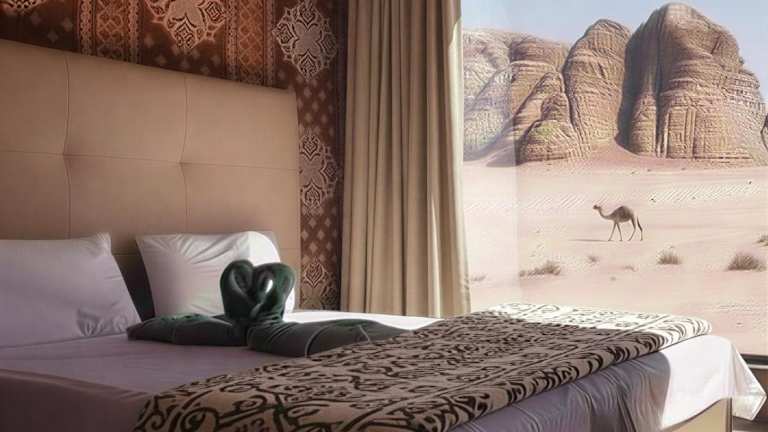 Die Unterkunft befindet sich in Wadi Rum, rund 73 km vom Flughafen Aqaba entfernt. Die Umgebung bietet eine malerische Landschaft, bekannt für ihre Wüstenlandschaften und beeindruckenden Felsformationen.