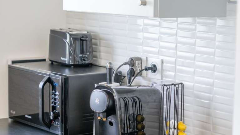 Gäste können ein kontinentales Frühstück genießen. Die voll ausgestattete Küche der Ferienwohnung umfasst einen Kühlschrank und eine Kaffeemaschine.