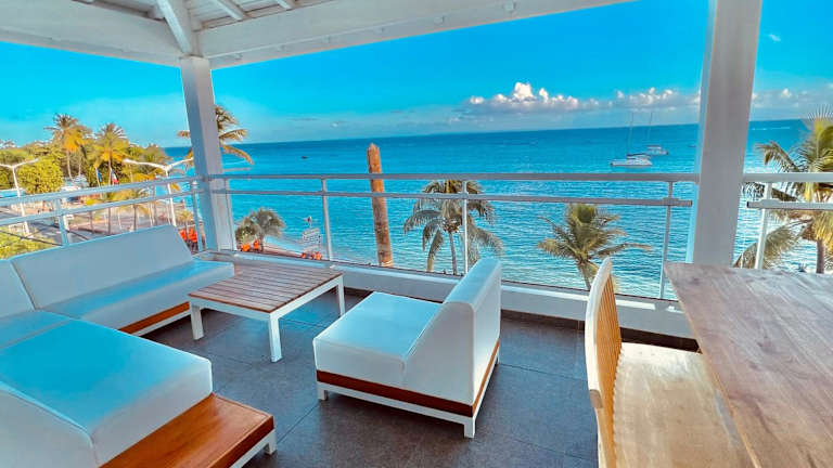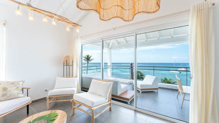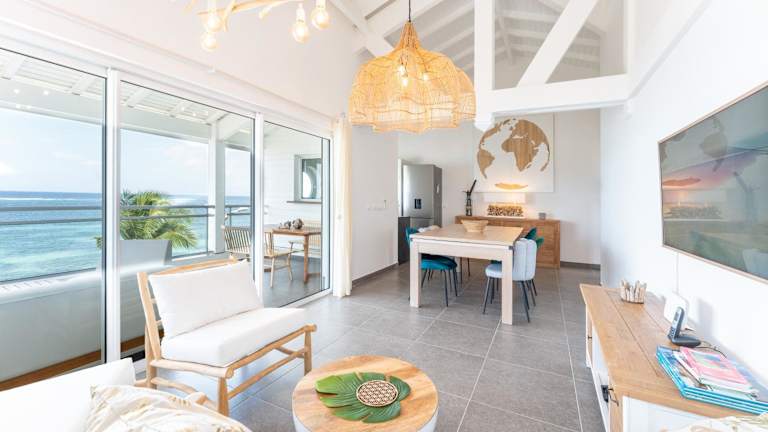 Only4view - Rooftop & spa Sainte-Anne bietet Übernachtungsmöglichkeiten in einer modernen Ferienwohnung, die klimatisiert ist und über eine Terrasse sowie kostenloses WLAN verfügt. Die Unterkunft ist direkt am Strand gelegen und stellt einen Geldautomaten sowie einen Conciergeservice zur Verfügung.