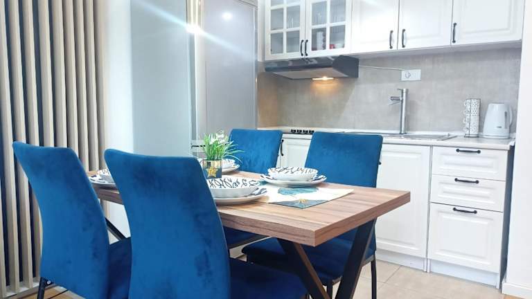 Die Ferienwohnung umfasst ein Schlafzimmer und ein Wohnzimmer. Sie ist mit einer voll ausgestatteten Küche ausgestattet, die über einen Kühlschrank und einen Wasserkocher verfügt. Zudem gibt es ein Badezimmer mit Dusche und kostenlosen Pflegeprodukten. Handtücher und Bettwäsche werden bereitgestellt.