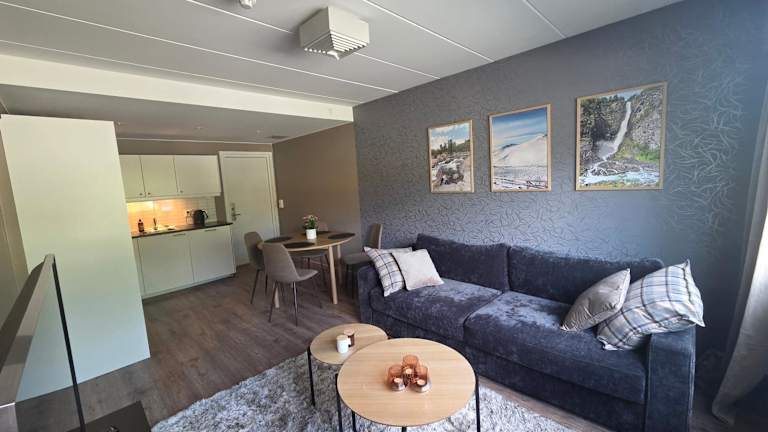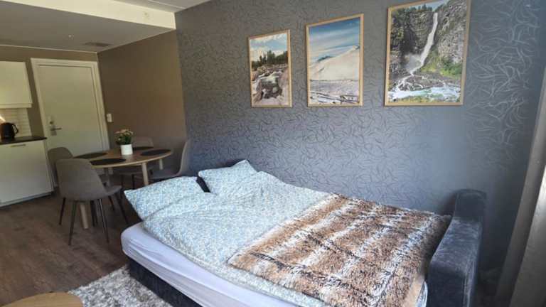 Das Oppdal Sentrum Apartment bietet eine Unterkunft mit einem Schlafzimmer, einem Wohnzimmer und einer voll ausgestatteten Küche. Wäsche und Handtücher sind im Preis inbegriffen. Gäste profitieren von kostenlosem WLAN und einem privaten Parkplatz auf dem Gelände. Die Unterkunft wird von einem privaten Gastgeber verwaltet und ermöglicht es Haustieren, möglicherweise gegen Gebühr.
