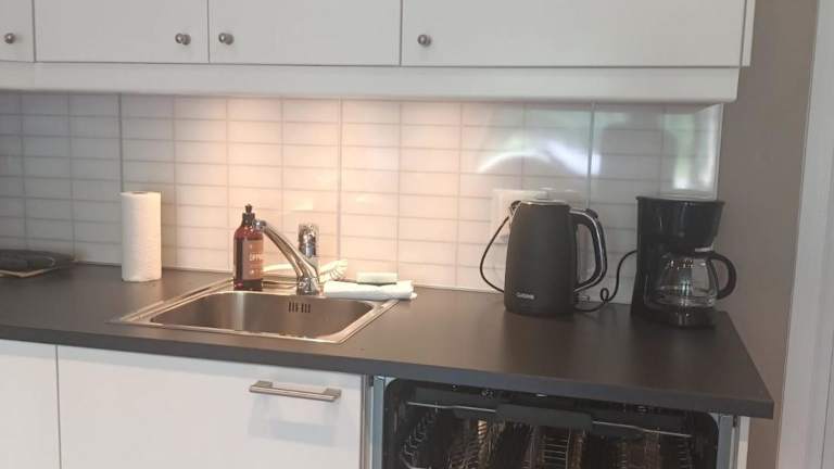 Die Ferienwohnung umfasst ein Schlafzimmer sowie ein Wohnzimmer und verfügt über eine vollständig ausgestattete Küche, die mit einem Kühlschrank und einem Geschirrspüler ausgestattet ist. Handtücher und Bettwäsche werden bereitgestellt.