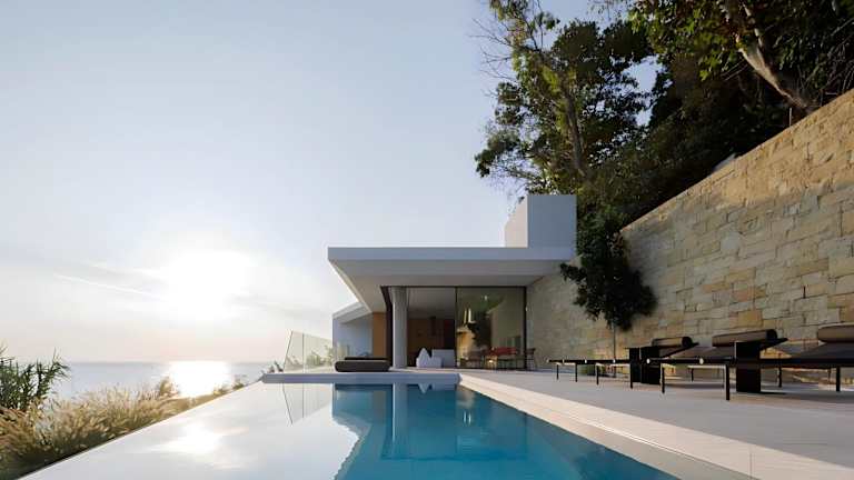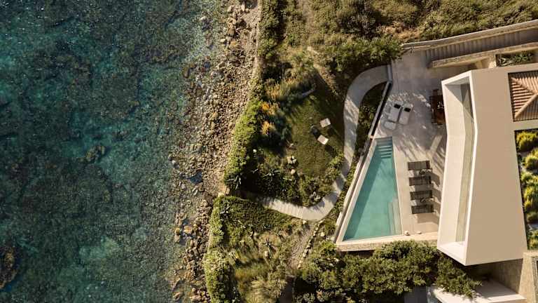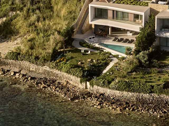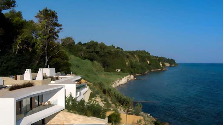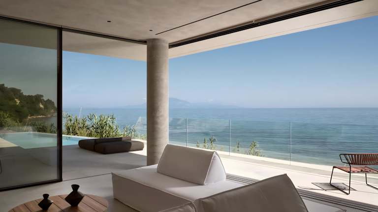 Opsis villas, A waterfront & architectural retreat bietet Übernachtungsmöglichkeiten mit kostenlosem WLAN und Klimaanlage. Die Unterkunft umfasst einen Garten mit Außenpool sowie eine Terrasse mit Meerblick.