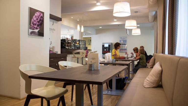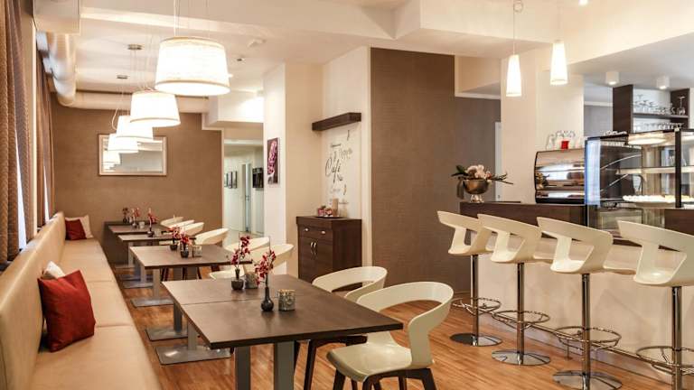 Die Verpflegungsmöglichkeiten im Hotel umfassen ein à la carte Frühstück sowie vegetarische und glutenfreie Optionen, die auf Anfrage angeboten werden. Ein Café vor Ort sorgt zudem für zusätzliche kulinarische Möglichkeiten.