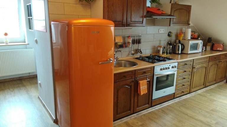 Das Orange Loft Apartment bietet ein komfortables und gut ausgestattetes Zimmer für Ihren Aufenthalt. Das Apartment verfügt über einen TV mit DVD-Player, eine voll ausgestattete Küche mit Essbereich und ein Badezimmer mit Dusche, kostenlosen Pflegeprodukten, Wäschetrockner und Waschmaschine. Für Familien mit kleinen Kindern steht ein Babybett kostenfrei zur Verfügung.