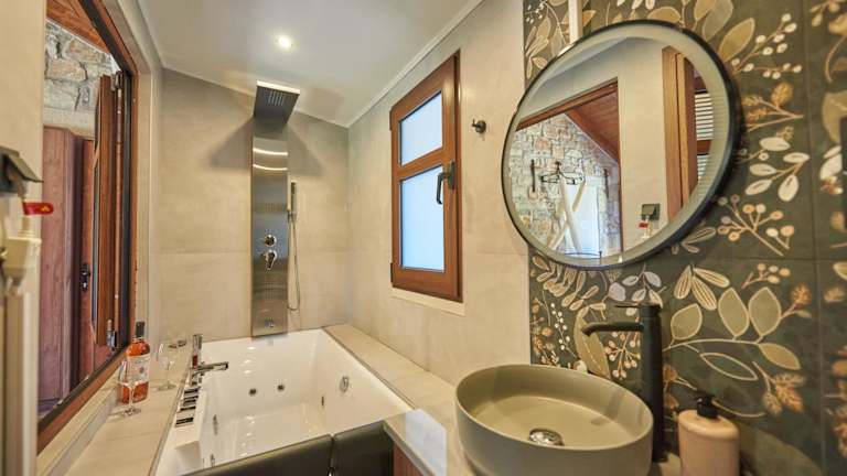 Das klimatisierte Apartment im OREADES-HOMES verfügt über ein gemütliches Schlafzimmer, ein geräumiges Wohnzimmer und eine voll ausgestattete Küche. Die Küche ist mit einem Kühlschrank und einem Wasserkocher ausgestattet, so dass Sie Ihre Mahlzeiten ganz nach Ihren Wünschen zubereiten können. Das Badezimmer ist luxuriös und verfügt über eine Dusche und einen Whirlpool. Handtücher und Bettwäsche werden gestellt, so dass Sie sich um nichts kümmern müssen.