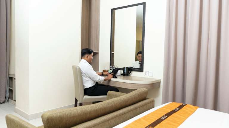 Das Oria Hotel Jakarta bietet insgesamt 40 Zimmer und 2 Suiten. Alle Zimmer sind mit Klimaanlage, Ventilator, Balkon, Doppelbett oder Kingsize-Bett, Safe, Minibar, Schreibtisch, Kühlschrank und Tee-/Kaffeemaschine ausgestattet. Zur Unterhaltung stehen ein TV-Gerät mit Satelliten-/Kabelempfang und kostenfreies WLAN zur Verfügung. Die Badezimmer verfügen über eine Dusche oder Badewanne, einen Haartrockner und kostenlose Pflegeprodukte. Ein Raucherzimmer ist ebenfalls vorhanden.