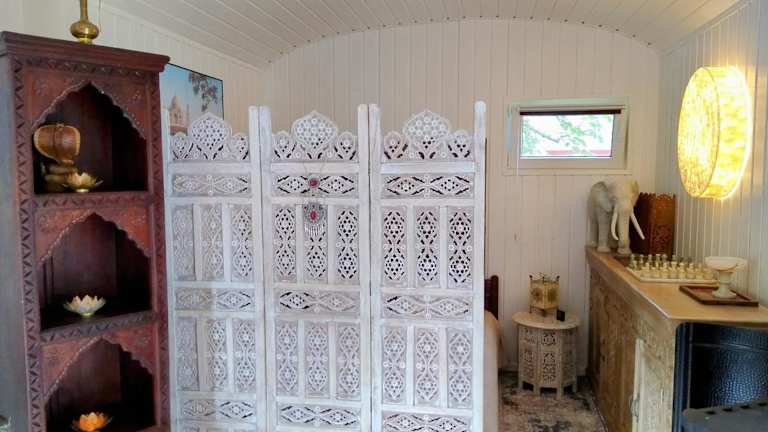 Oriental Tiny House mit Sauna bietet Übernachtungsmöglichkeiten mit kostenlosem WLAN, Klimaanlage, Garten sowie einer Sauna zur Nutzung. Zur Einrichtung gehören ein kostenloser Privatparkplatz und Nichtraucherzimmer. Die Unterkunft akzeptiert Haustiere auf Anfrage.