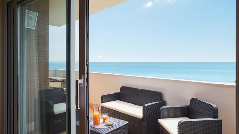 Orizzonte Apartment Amazing Sea View bietet Übernachtungsmöglichkeiten mit kostenlosem WLAN, Klimaanlage und einem eigenen Strandbereich. Die Unterkunft ist mit einem Balkon ausgestattet und bietet einen herrlichen Meerblick.