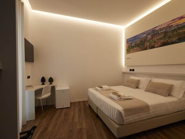 Die klimatisierten Zimmer im Orizzonte MHotel sind modern und komfortabel eingerichtet. Jedes Zimmer verfügt über einen Flachbild-TV, einen Schreibtisch und ein eigenes Bad mit einem Bidet. Die Zimmer bieten den Gästen einen gemütlichen Rückzugsort nach einem langen Tag voller Erkundungen.