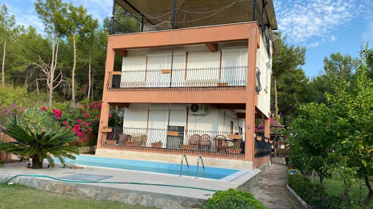 Die ormanın içinde geniş havuzlu triplex villa bietet einen Panoramablick auf die Berge sowie zahlreiche Annehmlichkeiten wie einen saisonalen Außenpool, einen eigenen Strandbereich und eine Gemeinschaftslounge. Zur Ausstattung gehören ein Garten, ein Grillbereich sowie kostenfreies WLAN und Privatparkplätze.