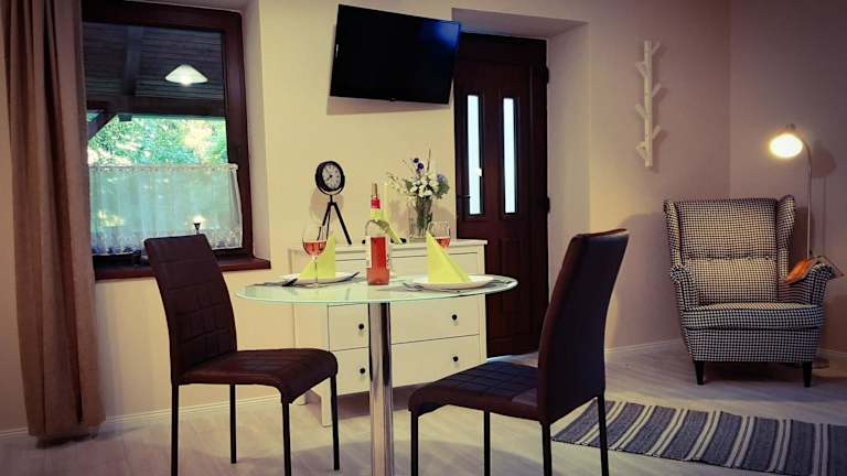 Das Őrségi Katicás Vendégház in Viszák bietet komfortable Unterkünfte und kostenfreie Privatparkplätze. Die Unterkunft verfügt über eine Sauna und ist der perfekte Ort, um sich zu entspannen und die Natur zu genießen. Die Apartments sind gut ausgestattet und bieten eine Terrasse, einen Flachbild-TV und ein eigenes Bad. In der Küche finden Sie alles, was Sie brauchen, um Ihre eigenen Mahlzeiten zuzubereiten. Die Lage des Vendégház ist ideal für Wanderungen und Sie können auch den Garten nutzen.