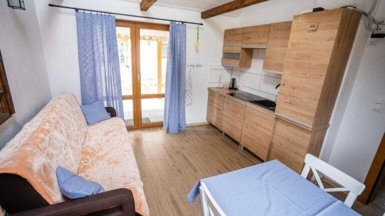 Das Ferienhaus verfügt über ein Schlafzimmer, ein Wohnzimmer, einen Flachbild-TV und eine gut ausgestattete Küchenzeile mit Kühlschrank und Herdplatte. Es gibt zudem ein Badezimmer mit Badewanne oder Dusche.