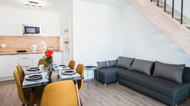 Die Unterkünfte im Ośrodek Wczasowy KALA bieten alles, was Sie für einen angenehmen Aufenthalt benötigen. Jede Unterkunft verfügt über eine Terrasse oder einen Balkon, kostenfreies WLAN und einen Flachbild-TV. Einige Unterkünfte sind mit einer voll ausgestatteten Küche inklusive Kühlschrank, Geschirrspüler und Backofen ausgestattet, so dass Sie Ihre eigenen Mahlzeiten zubereiten können. Genießen Sie den Komfort und die Annehmlichkeiten dieser gut ausgestatteten Zimmer.