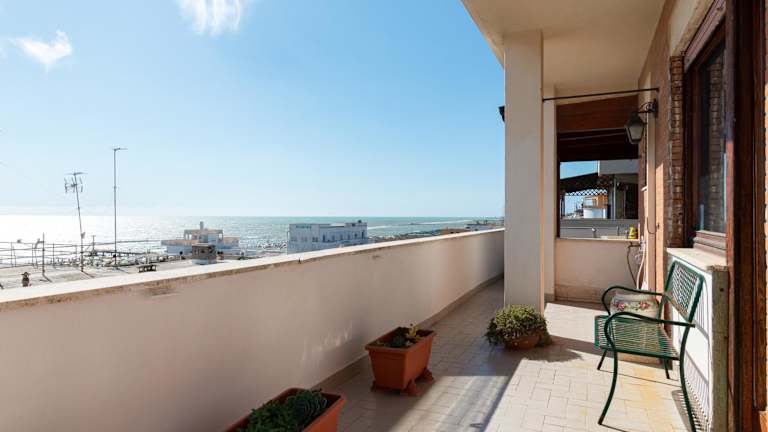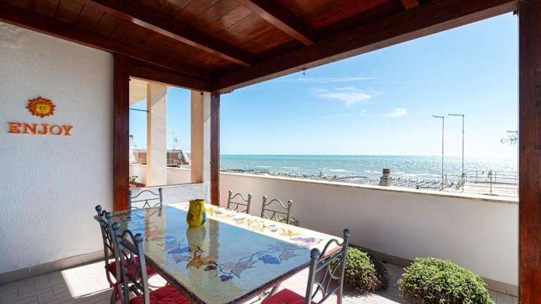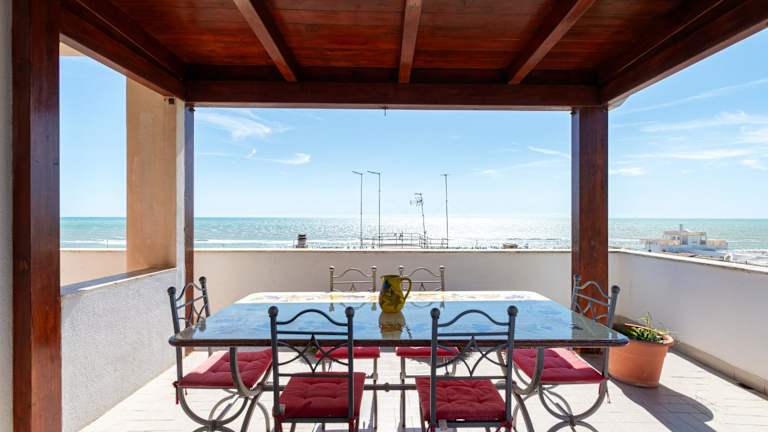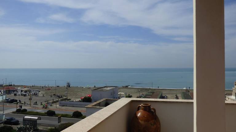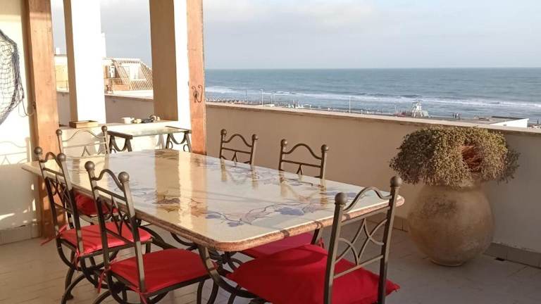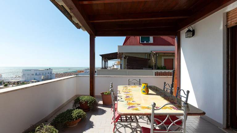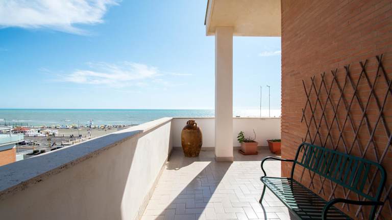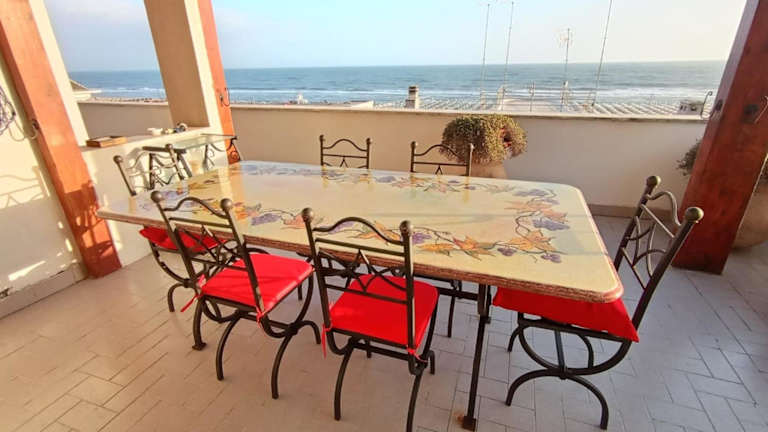 Ostia Attico fronte mare ist eine strandnahe Unterkunft mit Gartenblick und bietet eine eigene Terrasse mit Meerblick. Die Ferienwohnung ist gut ausgestattet und bietet Zugang zu kostenlosem WLAN.