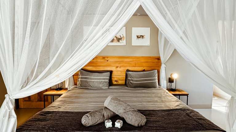 Das Ostrich Hide befindet sich im Marloth Park in der Region Mpumalanga. Die Lage bietet Ihnen die Möglichkeit, die atemberaubende Natur der Umgebung zu erkunden und die Tierwelt hautnah zu erleben. Die Crocodile Bridge und der Leopard Creek Country Club sind beliebte Ausflugsziele in der Nähe. Der internationale Flughafen Kruger Mpumalanga liegt nur 96 km entfernt.