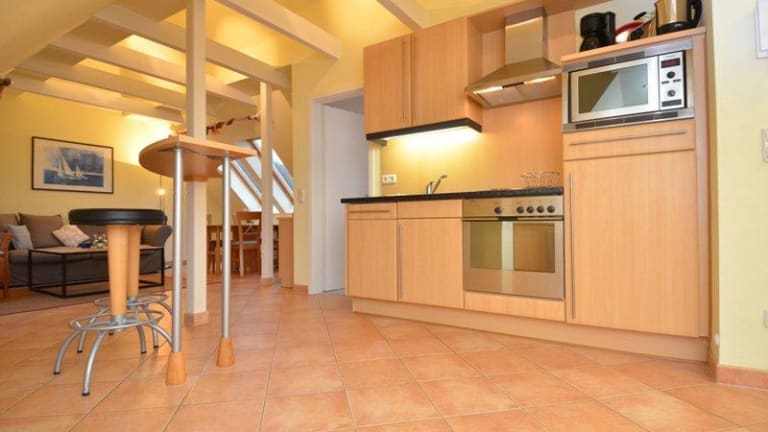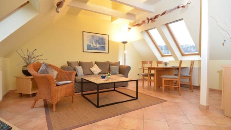 WG 7 ist ein geschmackvolles 3-Raum-App. im DG mit ca. 77 m² Wohnfläche. Ein Wohnraum mit Schlafcouch für 1 Person und mit offener Küche, 2 Schlafzimmer mit Doppelbetten, ein modernes Duschbad und eine Lesecke im Wintergarten erwarten Sie. Buchbar für 1-5 Personen. WG 9 ist ebenfalls ein 3-Raum-App. im DG mit ca. 58m² Wohnfläche und hier ist ein Wohnraum mit offener Küche, 2 Schlafzimmer und ein modernes Duschbad mit Badewanne vorhanden. Buchbar für 1-4 Personen. Haustiere sind nicht erlaubt. Internet ist vorhanden.