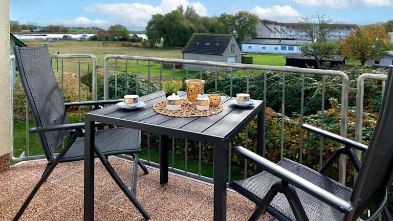 Die Ferienwohnung Ostseeblick bietet eine komfortable Übernachtungsmöglichkeit mit Meerblick. Die Ausstattung umfasst einen Balkon sowie Annehmlichkeiten wie einen Wasserkocher.