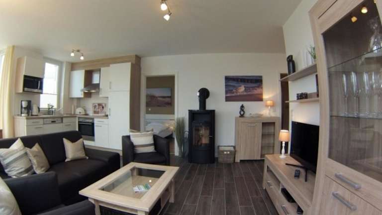 Die Ferienwohnung ist mit einer Küche ausgestattet, die über einen Kühlschrank und einen Geschirrspüler verfügt. Weitere Verpflegungsdetails liegen nicht vor.