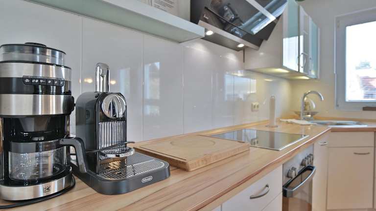 Das Appartement verfügt über eine gut ausgestattete Küche mit einem Kühlschrank und einem Geschirrspüler. Informationen zu externen Verpflegungsmöglichkeiten liegen nicht vor.