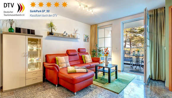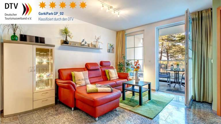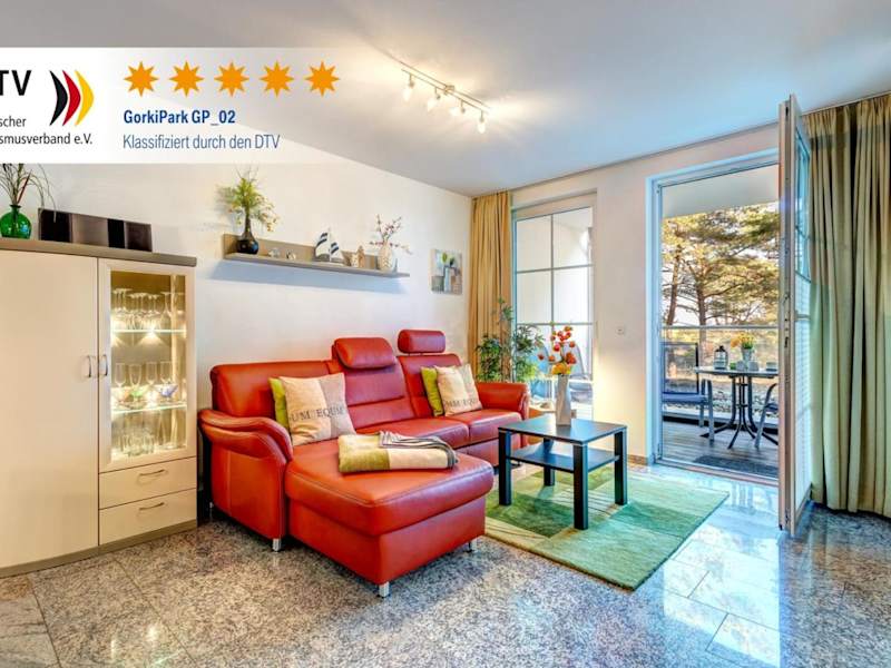 Die Ostseeresidenz Gorki-Park - 02 mit Wellness und Schwimmbad bietet moderne Übernachtungsmöglichkeiten. Die Ferienwohnung überzeugt durch ihren direkten Zugang zum Strand sowie durch Annehmlichkeiten wie einen Fitnessbereich, eine Sauna und einen Innenpool.