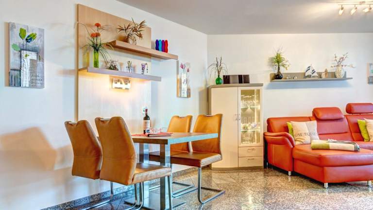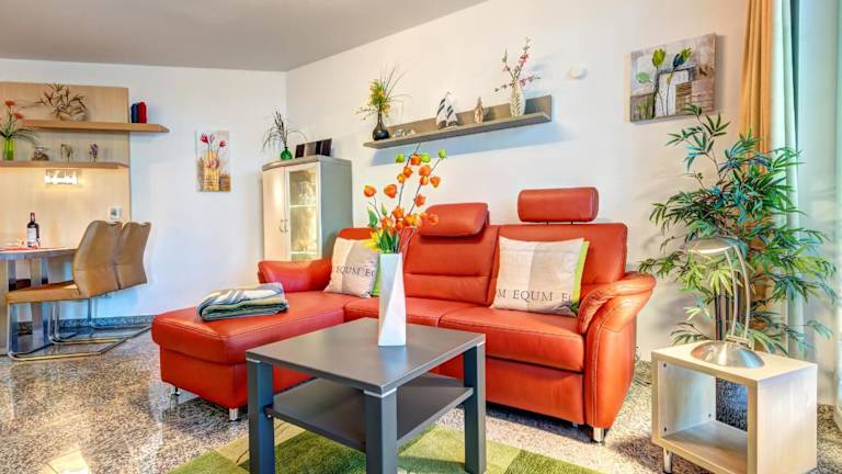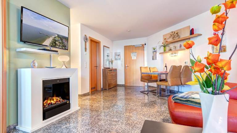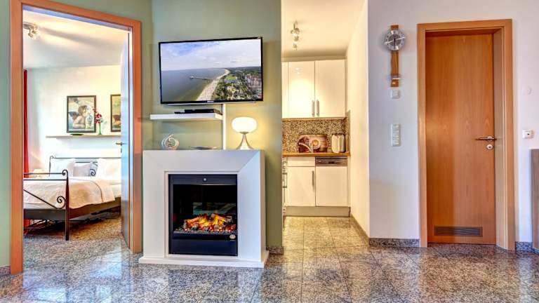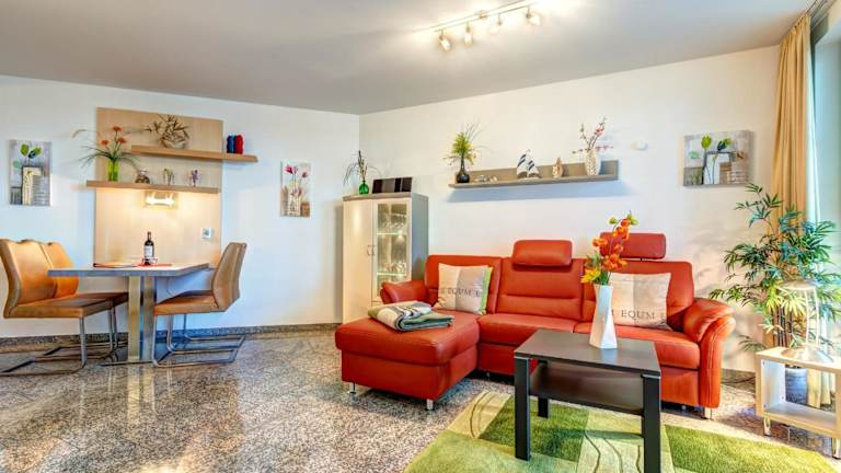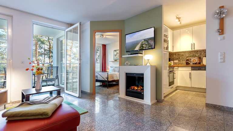 Die Ferienwohnung verfügt über ein Schlafzimmer, ein Wohnzimmer sowie eine vollständig ausgestattete Küche mit Kühlschrank und Kaffeemaschine. Außerdem sind ein Badezimmer mit Dusche und Haartrockner sowie verschiedene Unterhaltungsgeräte wie TV, Blu-ray-Player, DVD-Player und CD-Player vorhanden. Ein Balkon ist ebenfalls Teil der Ausstattung.