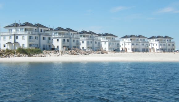 Das im skandinavischen Stil und als sogenannter „Vierling“ erbaute weiße lichtdurchflutete Ferienhaus „STRAND HUS“ liegt am Ende der Stichstraße „Am Yachthafen“ und direkt (!) am (Privat-)Strand, der zu den 6 Weißen Strandvillen mit insgesamt 24 Wohneinheiten gehört. Durch seine Südost-Ausrichtung bietet das Haus einen wirklich unglaublichen Blick auf den Strand, die Hafeneinfahrt, die einfahrenden/ vorbeifahrenden Segelboote sowie die Ostsee… Einige Bootsstege mit Segelbooten befinden sich bereits nur 20 Schritte entfernt, weitere kommen sukzessive dazu, und in einer Entfernung von 150 m schließt sich im Norden dann ein idyllisches Naturschutzgebiet, der sogenannte „Nordhaken“ an, welches allerdings nicht betreten werden darf.