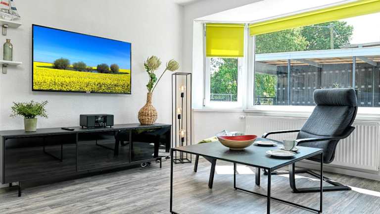 Das Ferienhaus ist mit zwei Schlafzimmern und einem TV mit Satellitenkanälen ausgestattet. Die Küche bietet moderne Annehmlichkeiten, darunter einen Kühlschrank und einen Geschirrspüler. Bettwäsche und Handtücher sind nicht im Preis enthalten, können jedoch gegen eine Gebühr gemietet oder selbst mitgebracht werden.