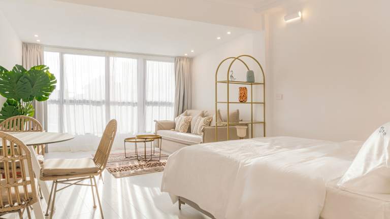 Die Zimmer sind mit einer Klimaanlage und einer voll ausgestatteten Küchenzeile ausgestattet. Zu den Annehmlichkeiten gehören ein Flachbild-TV, ein eigenes Badezimmer mit Dusche, kostenfreien Pflegeprodukten und einem Haartrockner. Zur weiteren Ausstattung zählen ein Kühlschrank, eine Mikrowelle, eine Herdplatte, eine Kaffeemaschine und ein Wasserkocher. Schallisolierte Zimmer sorgen für zusätzlichen Komfort.