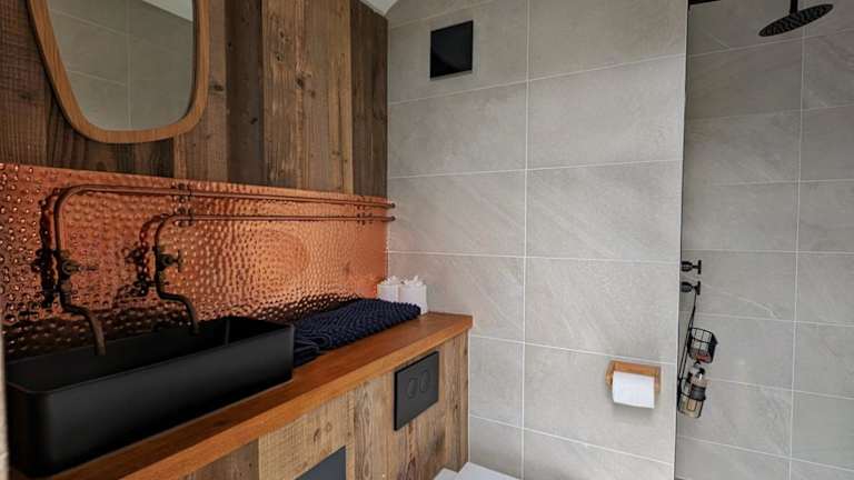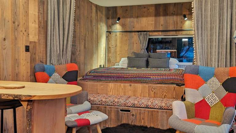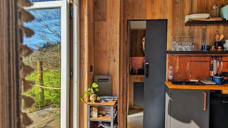 Die Lodge beinhaltet ein Schlafzimmer, eine Küchenzeile ausgestattet mit einem Ofen und einer Herdplatte sowie ein Badezimmer mit Dusche und kostenlosen Pflegeprodukten. Handtücher und Bettwäsche werden bereitgestellt.
