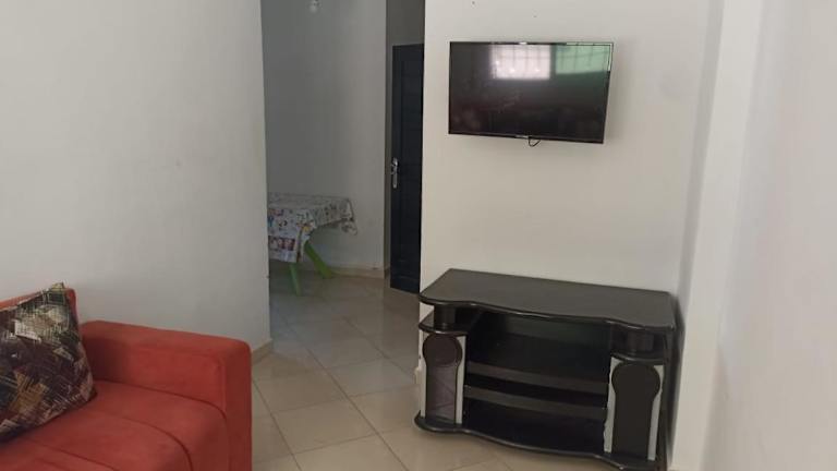 Die Ferienwohnung umfasst ein Schlafzimmer und ein Wohnzimmer, ausgestattet mit einem Flachbild-TV. Eine voll ausgestattete Küche ermöglicht die Zubereitung eigener Speisen.