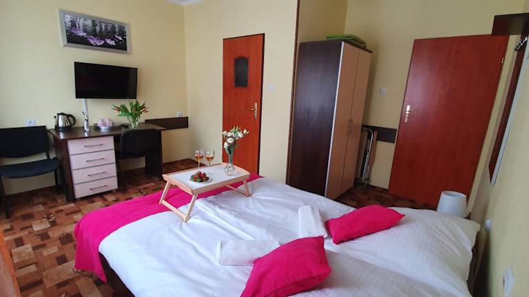 OW Podczele II bietet pastellfarbene Zimmer mit eigenem Bad und Gartenblick. Die Unterkunft umfasst eine Vielzahl von Annehmlichkeiten, darunter kostenfreies WLAN, eine Tischtennisplatte, Grillmöglichkeiten im Garten und einen Kinderspielplatz. Die Unterkunft ist für verschiedene Altersgruppen geeignet, wobei besondere Auflagen für den Aufenthalt von Minderjährigen gelten. Haustiere sind erlaubt. Zu den angebotenen Dienstleistungen gehören ein Shuttle-Service sowie Konferenz- und Veranstaltungsräume.