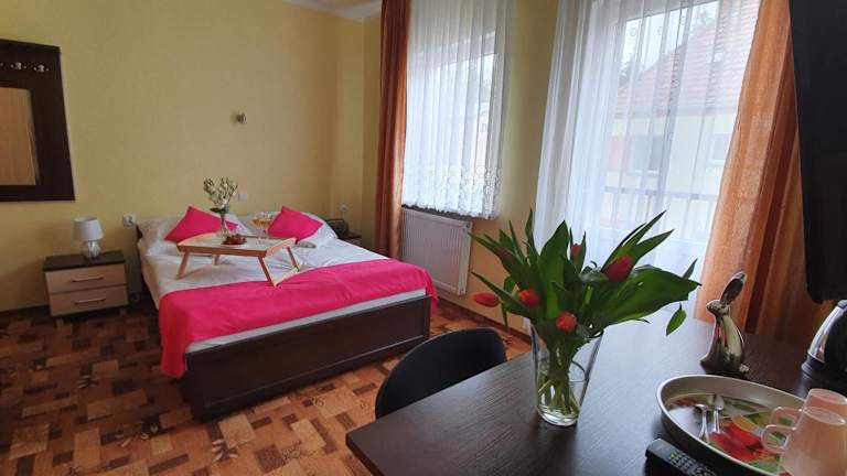 Im Speisesaal werden Gerichte der polnischen Küche serviert. Zudem haben die Gäste die Möglichkeit, die Grillmöglichkeiten im Garten zu nutzen. Lunchpakete und spezielle Gerichte für besondere Ernährungsbedürfnisse sind ebenfalls erhältlich.