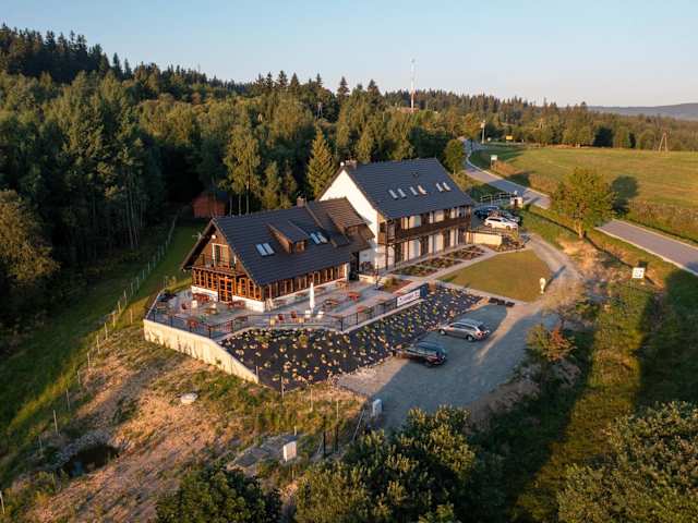 Das Owca z widokiem Hotel befindet sich in Spalona, nur 23 km vom Bahnhof Polanica Zdroj entfernt. Die Lage des Hotels bietet einen atemberaubenden Bergblick und eine ruhige Umgebung, ideal für Naturliebhaber. In der Nähe finden Sie auch den Chopin Manor und den Bahnhof Kudowa Zdrój, die jeweils etwa 36 km bzw. 23 km entfernt liegen. Der Flughafen Pardubice ist mit einer Entfernung von 87 km vom Hotel aus gut zu erreichen.