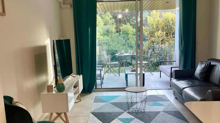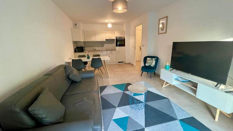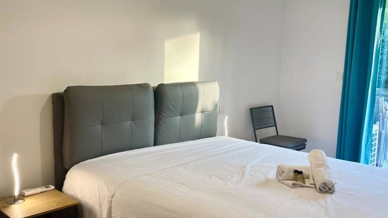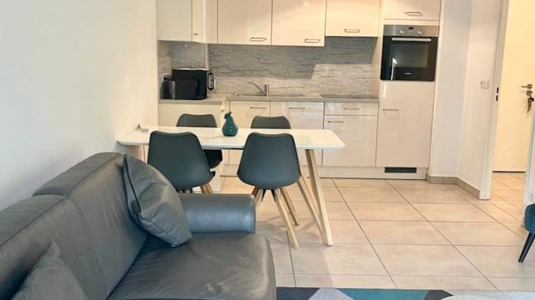 Das Apartment besteht aus einem Schlafzimmer, einem Wohnzimmer, einer voll ausgestatteten Küche mit Kühlschrank und Kaffeemaschine sowie einem Badezimmer mit Dusche und Haartrockner. Handtücher und Bettwäsche sind im Preis inbegriffen. Es sind spezielle Regelungen für Reinigungsdienste und die Bereitstellung von einigen Haushaltsartikeln zu beachten.