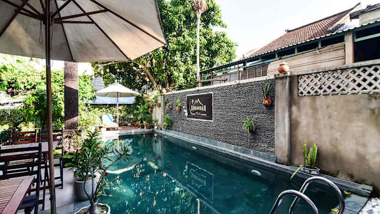Genießen Sie das schöne Wetter auf der Terrasse und entspannen Sie sich im Außenpool der OYO 473 Suburban Villa.