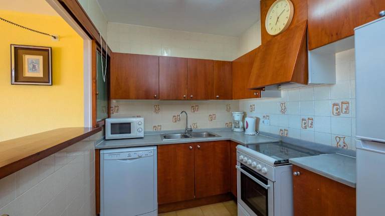 Die Ferienwohnung verfügt über eine voll ausgestattete Küche mit Kühlschrank, Geschirrspüler, Ofen und Kaffeemaschine, jedoch sind keine weiteren Verpflegungsmöglichkeiten angegeben.