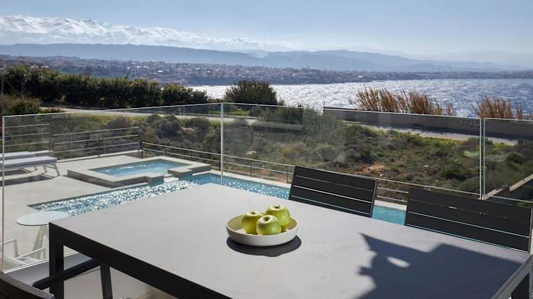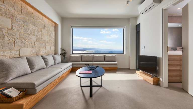 Die Pachnes Luxury Apartments - Heated Pool, Sea View bieten modernisierte Wohneinheiten mit kostenlosem WLAN und Klimaanlage. Zu den Annehmlichkeiten gehören ein Außenpool sowie ein Garten und eine Terrasse mit Stadtblick, die den Gästen zur Verfügung stehen.