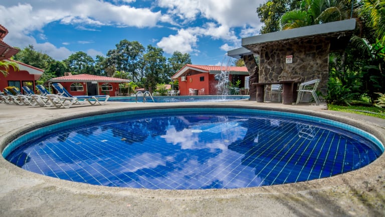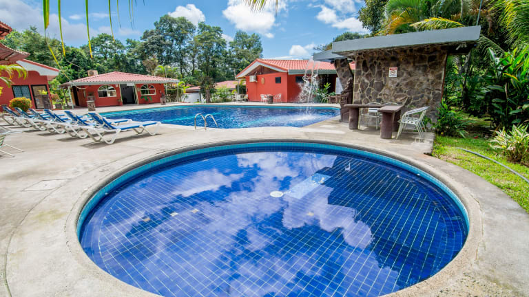 Das Pacific Paradise Resort befindet sich in Quepos und bietet eine günstige Lage in der Nähe des Nationalparks Manuel Antonio. Von hier aus können Sie die atemberaubende Natur und die Tierwelt der Region erkunden. Das Resort liegt auch in der Nähe von Canopy, wo Sie aufregende Abenteuer in den Baumwipfeln erleben können. Der internationale Flughafen Tobías Bolaños ist ebenfalls gut erreichbar und ermöglicht eine bequeme Anreise zum Hotel.
