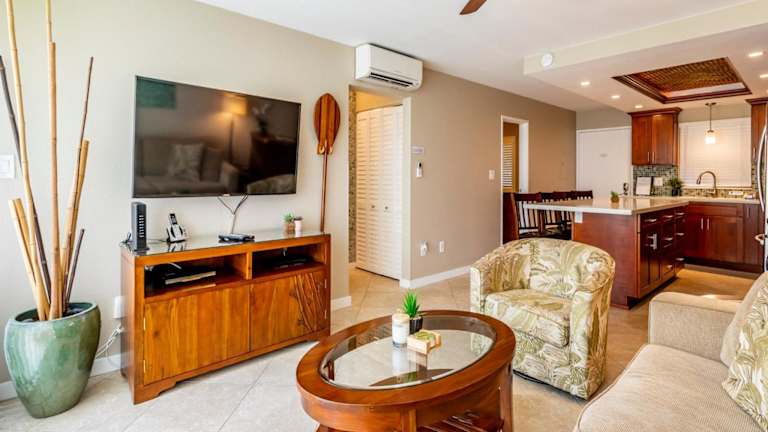 Die Unterkunft Pacific Shores A-209 befindet sich in Kihei, in unmittelbarer Nähe von Kamaole Beach (300 m) und Cove Beach (600 m). Keawakapu Beach ist in einer Entfernung von 2,8 km erreichbar, während der Wailea Emerald Golfplatz 7,6 km entfernt liegt. Der nächstgelegene Flughafen ist Kahului, der 22 km von der Unterkunft entfernt ist.
