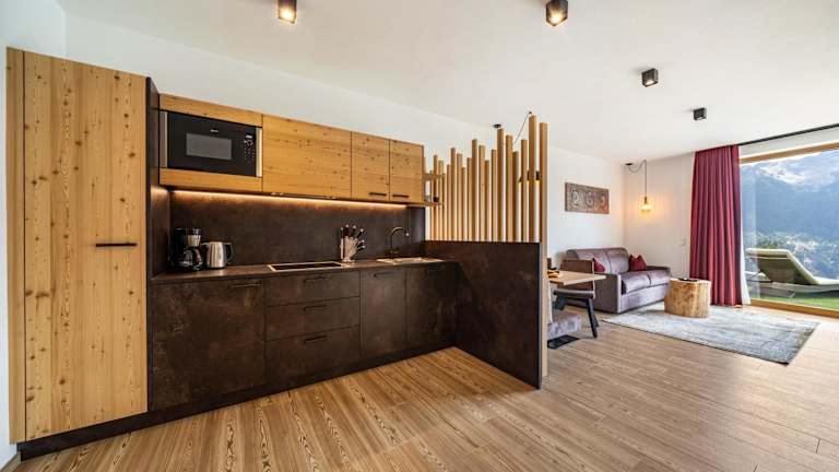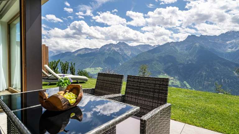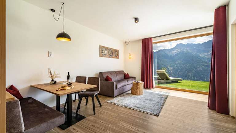 Die Unterkunft Paflur Lodges Abendrot befindet sich in Laas, umgeben von einer naturnahen Umgebung, die sich besonders zum Wandern und Fahrradfahren eignet.