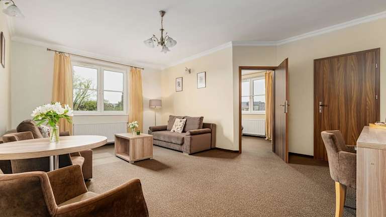 Die Zimmer im Hotel Pałac nad Jeziorem sind komfortabel und modern eingerichtet. Jedes Zimmer verfügt über eine Terrasse, einen Flachbild-TV und ein eigenes Bad mit Dusche. WLAN steht Ihnen kostenlos zur Verfügung.