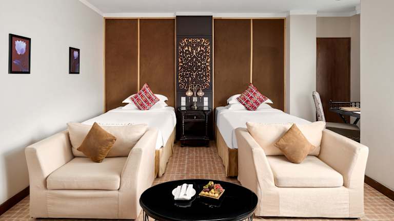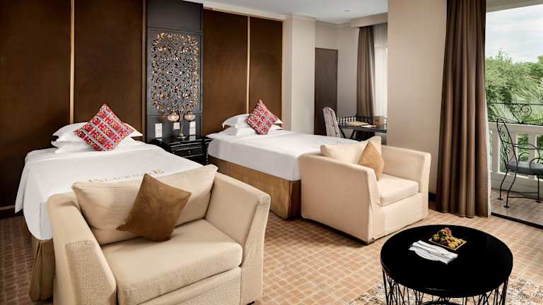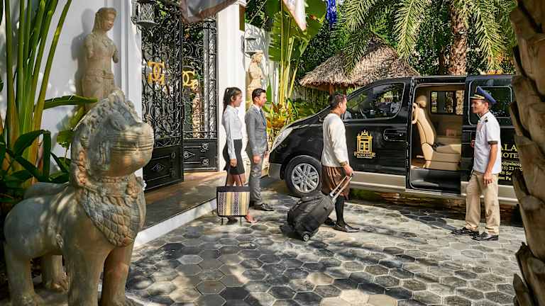 Das Palace Gate Hotel & Resort in Phnom Penh ist eine beeindruckende Unterkunft in einer restaurierten französischen Kolonialvilla. Mit Blick auf den Fluss Tonle Sap und einer erstklassigen Lage neben dem Königspalast bietet das Hotel seinen Gästen eine entspannte Atmosphäre und eine Vielzahl von Annehmlichkeiten wie einen Außenpool, ein Restaurant und eine Bar auf der Dachterrasse. WLAN ist in den öffentlichen Bereichen kostenlos verfügbar. Das Hotel liegt in der Nähe vieler Sehenswürdigkeiten wie dem Nationalmuseum und dem Kongresszentrum Chaktomouk. Die Zimmer sind klimatisiert und bieten einen Flachbild-TV, einige Zimmer haben einen Sitzbereich und bieten entweder einen Blick auf den Fluss oder den Pool. Das Hotel verfügt auch über eine 24-Stunden-Rezeption mit Geldwechsel, Tourenschalter und Conciergeservice. Ein Fitnesscenter und Wellnessanwendungen sind ebenfalls verfügbar.