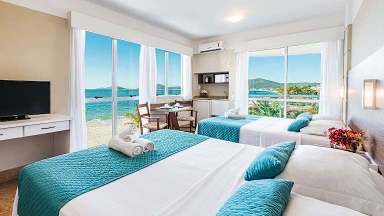 Das Palace Praia Hotel ist ein beeindruckendes Strandhotel direkt am Canasvieiras-Strand im Norden von Florianópolis. Mit einem Infinity-Pool, kostenfreiem WLAN und modernen Zimmern mit Balkon und Meerblick bietet das Hotel den perfekten Ort für einen erholsamen Urlaub. Genießen Sie das täglich kostenlose Frühstück und entspannen Sie im Solarium und Whirlpool auf dem Dach des Hotels. Mit direktem Zugang zum Strand und einer Bar und einem Restaurant vor Ort bietet das Palace Praia Hotel alles, was Sie für einen unvergesslichen Aufenthalt benötigen.