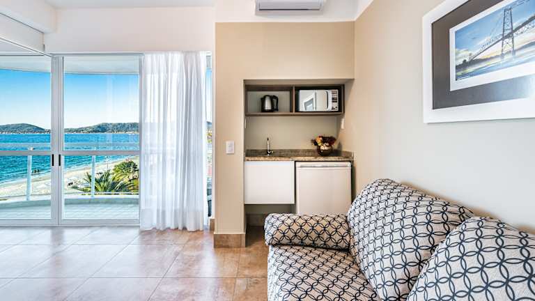 Die modernen Zimmer im Palace Praia Hotel verfügen über einen Balkon mit herrlichem Meerblick. Sie sind klimatisiert und mit Kabel-TV, einem eigenen Badezimmer und einer Küche mit Mikrowelle und Kühlschrank ausgestattet. Die Zimmer bieten den perfekten Rückzugsort nach einem Tag am Strand oder der Erkundung der Umgebung.