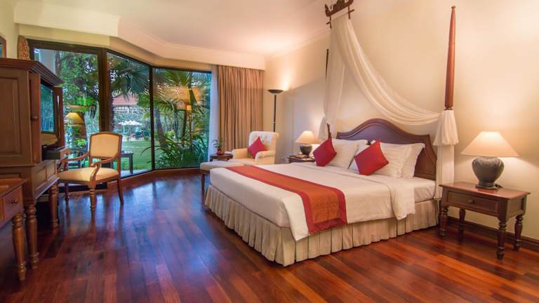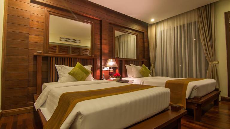 Das Hotel in Siem Reap bietet seinen Gästen einen komfortablen Aufenthalt im Herzen der Stadt. Mit freundlichem Personal, einem schönen Garten und verschiedenen Freizeiteinrichtungen wie Pools und einem Wellnessbereich, ist es der ideale Ort zum Entspannen. Die gastronomischen Einrichtungen bieten eine Auswahl an Restaurants und Bars, in denen Sie sich kulinarisch verwöhnen lassen können. Die Zimmer sind gemütlich eingerichtet und verfügen über Annehmlichkeiten wie Klimaanlage und kostenfreies WLAN.