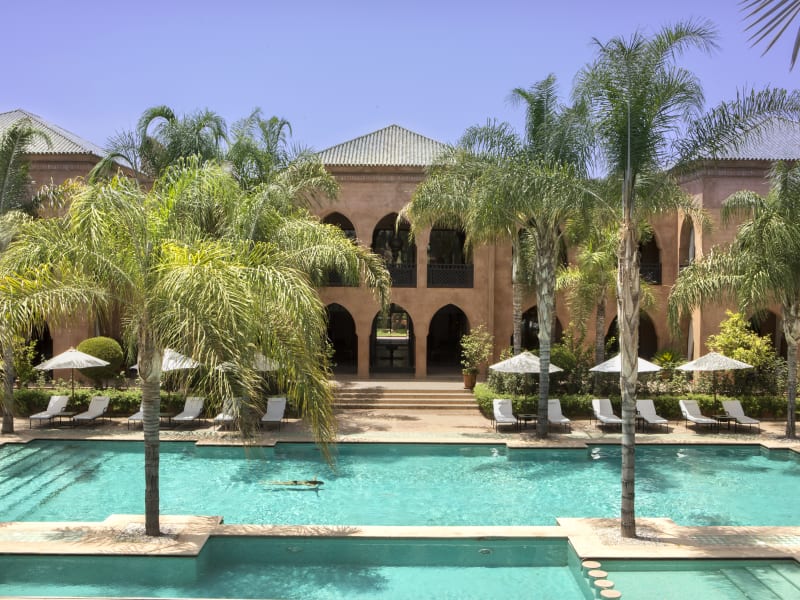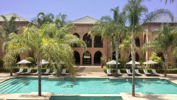 In der vornehmen Palmeraie gelegen, inmitten eines 2 Hektar großen majestätischen Gartens mit Blick auf das Atlasgebirge, liegt das Hotel nur ca. 6 km von der faszinierenden Innenstadt mit ihren zahlreichen Geschäften, Restaurants und Bars und etwa 13 km vom Flughafen entfernt. Ein kostenfreier Shuttle zur Innenstadt steht den Gästen, zweimal täglich, zur Verfügung.