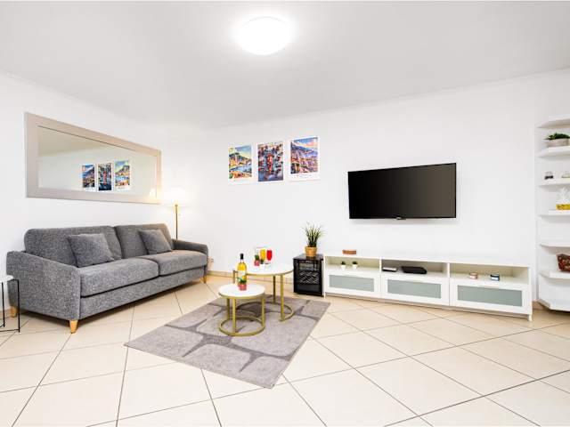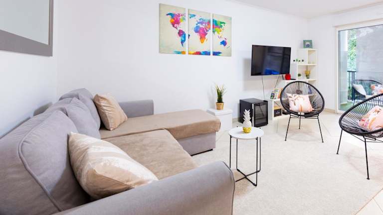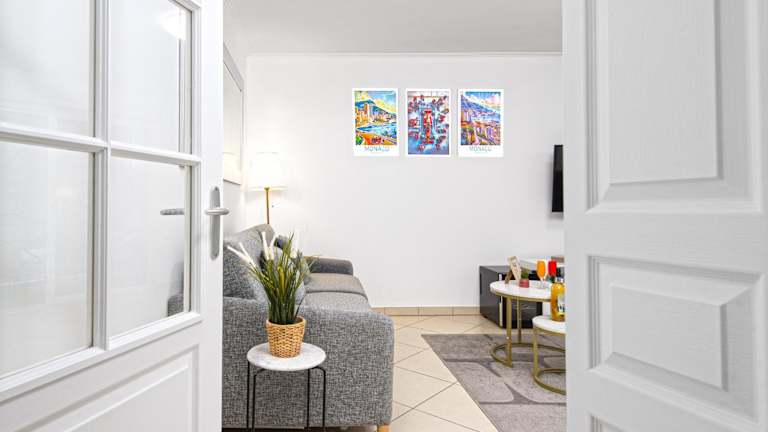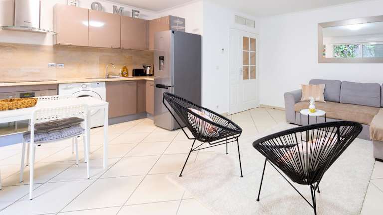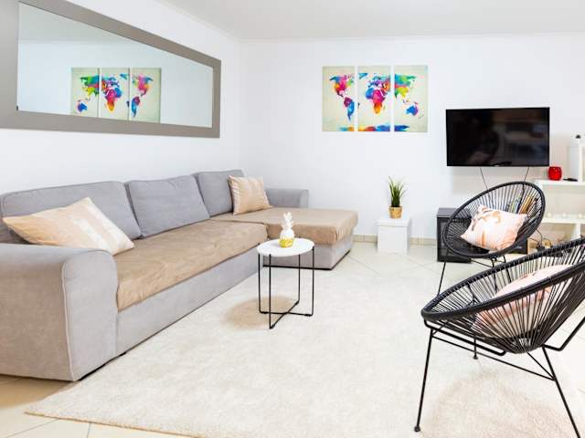 Die Ferienwohnung besteht aus einem Schlafzimmer und verfügt über eine voll ausgestattete Küche mit Kühlschrank und Geschirrspüler. Ausgestattet ist sie zudem mit einem Flachbild-TV, einem Sitzbereich und einem Badezimmer mit Badewanne. Handtücher und Bettwäsche werden bereitgestellt.