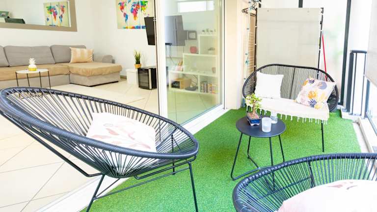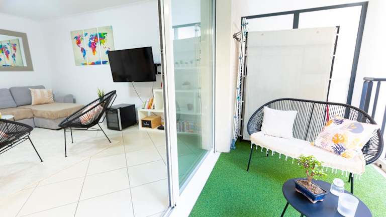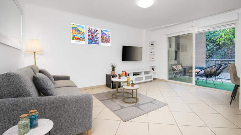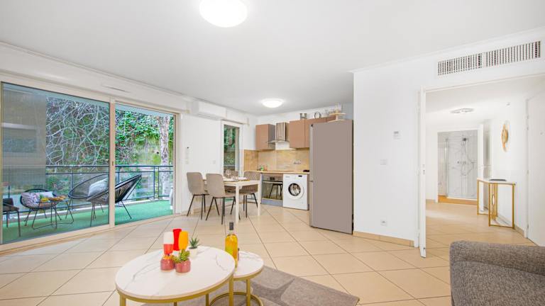 PALATINO - MONACO - 2 PIECES - Parking bietet eine Unterkunft mit Gartenblick, einer Terrasse und einem Balkon. Die Ferienwohnung ist klimatisiert und bietet kostenlosen WLAN-Zugang sowie einen Privatparkplatz.